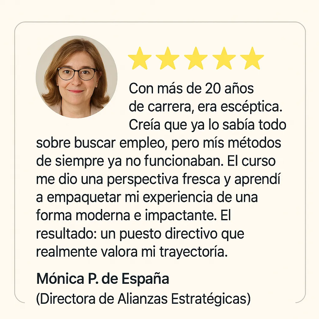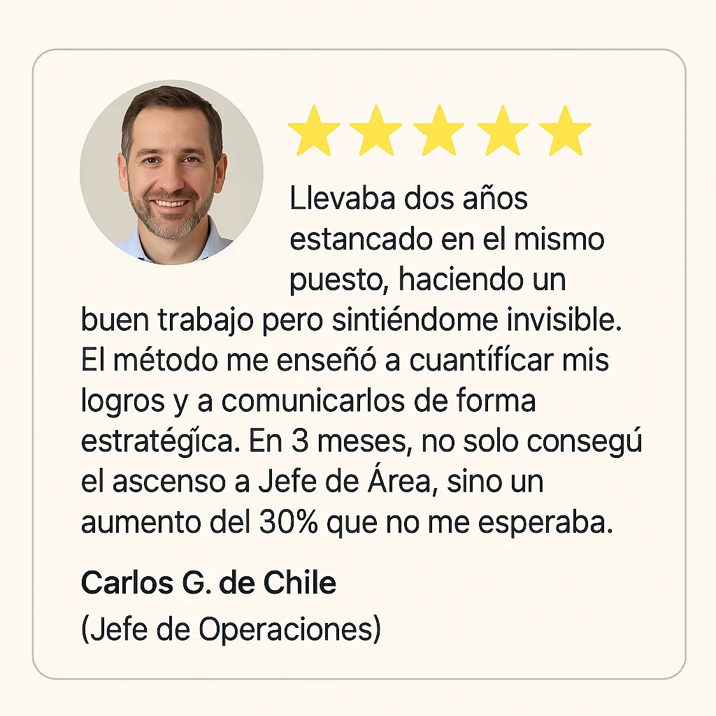Hoy, después de haber guiado a cientos de profesionales como tú a conseguir ascensos, cambiar de industria y encontrar trabajos con propósito, quiero compartir contigo el inicio de ese método.
